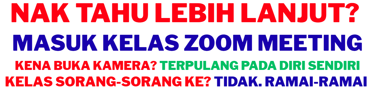 Harga kelas sebelum ini ialahRM250tapi ramai bagi respon tak mampu. Dah bagiFREEtapi ramai terlepas kelas zoom sebab benda FREE ramai tak hargai pun. Jadi, anda cuma bayar Yuran Komitmen RM5 sahaja supaya hargai kelas yang di adakan. Kita belajar dalamZoom Meeting Online. 😍